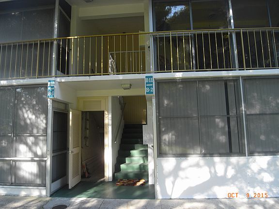 Enjoy peace and tranquility at this well maintained 55+ community in this 1 bedroom/1 bath, all tile, 2nd floor unit. Newer A/C installed in September 2016 making those hot days seem like a breeze while enjoying down time. Relax poolside at the large community pool or play shuffleboard for hours. Large size storage room off living room, dining area and eat-in kitchen. There is a front and back entrance to unit. Affordable HOA's are $291.50 and include an array of services including water. Four units share a common laundry facility. Only one purchaser must meet the age requirements for purchase along with HOA approval. This community is not pet friendly.