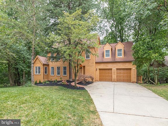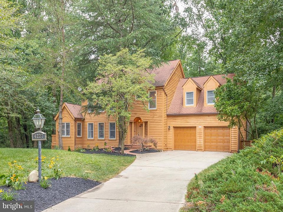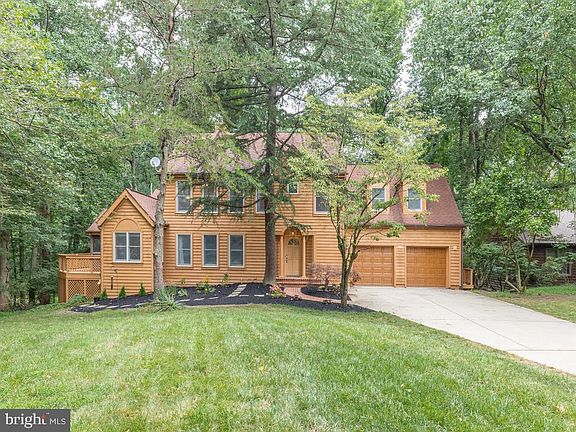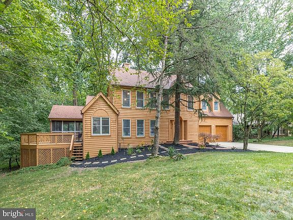Find an oasis of tranquility and peace at the end of a cul-de-sac with emerald views from numerous windows. This contemporary home with cedar siding features 5 bdrms and 3.5 baths. Much of the main floor has hardwood floors and new carpet. High end Sierra wood stove in spacious family room. Vaulted ceiling in kitchen features 2 skylights with breakfast room attached. Formal dining room and living room have bay windows with stunning wooded views. 4 bdrm top floor includes cathedral ceiling master bedroom with dormer windows, bench seats, and 2 walk-in closets. Renovated master bath with Turkish tile and frameless shower doors will delight you. Top floor laundry room makes life easier for the whole family. Finished basement with bonus 5th bdrm and full bath, large storage room, cedar closet and open air rec room with walk out slider. Home also has 2 car garage with rustic wooden doors and extra storage. 2 tiered wrap around deck with screened-in porch ( both are "as-is" but good condition) faces wooded open space stretching to a winding stream. Newly updated front landscape invites you home.