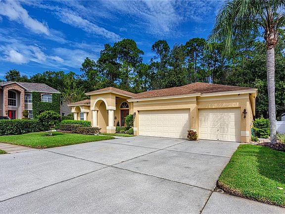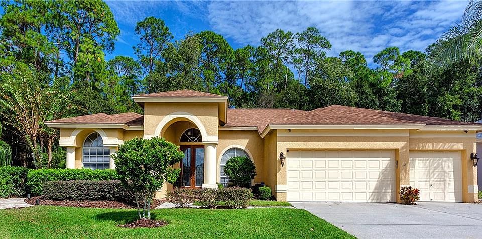 Welcome home to your fabulous 4 bedroom, 3 Bathroom home! This 2,620 sqft home backs to Brooker Creek Preserve providing privacy and has been updated extensively inside and out. Smart Home features have been incorporated throughout as well. The home includes Dining Room, Living Room, Family Room, enclosed patio with pool and spa, new patio with built-in firepit and an immaculate 3 car garage. The kitchen opens to the Family Room and is a chef's delight, including granite counters, a farm sink, range with ventilation hood, 42" cabinets with 15" upper cabinets on top of them (with accent lighting), a Samsung smart refrigerator with Bixby (you can order groceries from your kitchen or check your refrigerator from the store!). The Family room has a wood burning fireplace and opens to the great enclosed pool/spa area with an outdoor grill. To enjoy the outdoors more, there is a paver patio with a built-in fire pit and hammock area. The Living Room also has a Bio Ethanol vent-less Fireplace bringing style and warmth to the space. The Smart Home features include Alexa integrated with the security system with exterior cameras, Google Nest WiFi and the Samsung Bixby Refrigerator. The laundry room is set up for full size washer/dryers, has a small freezer and laundry sink. The upgraded pool features a jacuzzi spa (not heated) with spillover waterfall. The patio ceiling has a wood insert giving it a nice finished touch for your outdoor space. The three car garage provides a lot of storage space and has an epoxy coated floor. The home is wired for a direct connection to a portable generator which stays with the home to provide partial power in the event of an outage. The sprinkler system is an Orbit B-Hyve Smart watering system, automatically adjusting to deliver the right amount of water. This home has been thoroughly updated and is located in a great neighborhood with top rated schools. Floor plans are illustrative. All measurements are approximate and to be verified by buyer. Patio and inside furniture may be available for purchase separately.