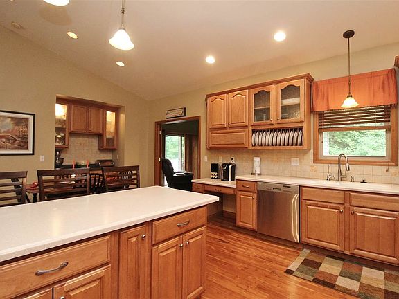 Your slice of nature and heaven awaits! Enjoy a spacious and custom designed 3 bedroom, 2 bath home on a private and wooded 2.76 acre lot with a small creek in the back yard. This open concept home greets you warmly with vaulted ceilings and a lovely gas log fireplace and mantel then carries you into the beautiful eat-in kitchen with hardwood floors, custom cabinetry, stainless steal appliances and the perfect area for a coffee bar. Off the kitchen, get cozy in the large family room with french doors and beamed ceiling. The master suite doesn't disappoint either, with beautiful tray ceilings and 2 large walk in closets, one of which would make the perfect home office space not to mention an en suite with deep soaking tub. The 3 bay garage has ample storage space, with the 3rd bay currently being used as a work out room. Thanks to sliding glass doors off the family room you can also enjoy the outdoor space by hosting cookouts and gatherings on the spacious deck and back yard. If all this isn't enough, this home also offers a high efficiency heat pump with back up gas furnace for those extra cold nights. Don't miss out on this truly one of a kind property.