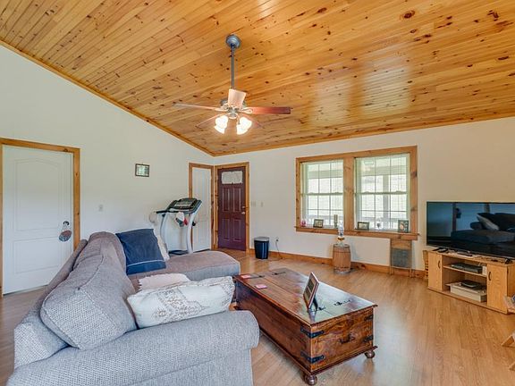 This cozy cabin is situated on 5.3 +/- level acres. It features an open floor plan with vaulted living area. The high ceiling is accentuated with wood. The two bedrooms are spacious with views of the rolling pasture. The kitchen features a Jennair range, lots of cabinets, pantry and an island. There is a breezy front porch for sipping your morning coffee and as the sun goes down sit on the screened back porch. There are tw storage buildings and a carport for extra storage. Thsi home was built to enjoy privacy and the quiet of life. No commission paid on seller's concessions.