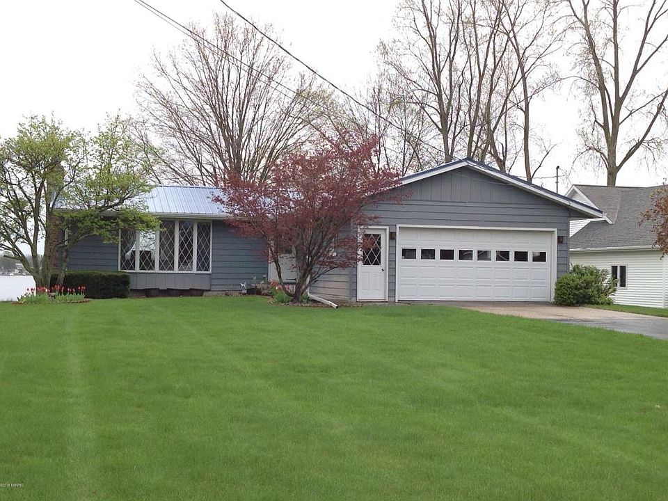 Wonderful home with 90 feet of frontage on Dickerson lake. You will want to call this place home the second you pull in the driveway. The adorable walkout ranch with new metal roof looks like the quintessential cottage. The large front yard would be great for kids to play. When you enter the home the first thing you will notice is the fantastic view of the lake. The great room with cathedral ceilings and fireplace is the perfect place to take in the vacation atmosphere. THe main floor also inclu des the kitchen, dining area with sliders to a deck, main floor laundry, 2 bedrooms, and a full bath. The lower level walkout has another fantastic family room with sliders to a patio, 3rd bedroom, another full bath, and sink/counter kitchen area and storage.This home is less than an hour to Grand Rapids, Perfect for a summer cottage. This home is a one owner home and has been well cared for. Spend this summer at the lake.