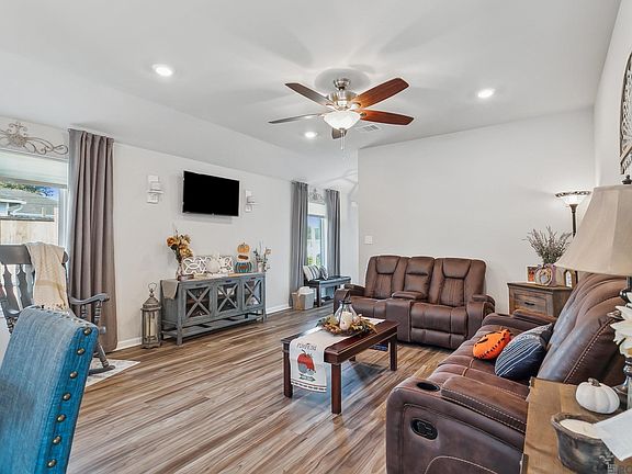 Welcome to Southern Pines Estates, right in the heart of Ponchatoula! This home is less than three years old and still has that fresh, like-new feel. The open-concept kitchen includes a breakfast bar that flows into the spacious living and dining areas—perfect for everyday living or entertaining. With 3 bedrooms and 2 bathrooms, the split floor plan offers privacy, especially in the primary suite which features its own en-suite bath. There have been plenty of thoughtful upgrades added throughout: recessed lighting in all bedrooms (2021), ceiling fans, motion-sensor light switches in the master closet and laundry room, closet lighting (2021), wall-mounted televisions with no visible cords (2021), a custom kitchen backsplash with under-cabinet lighting, and stylish window treatments. There are also extra outlets and no carpet anywhere in the home. Outside, you’ll find a large 16x20 extended patio (2021), gutters, a full irrigation system, upgraded landscaping, and even an extra parking pad.