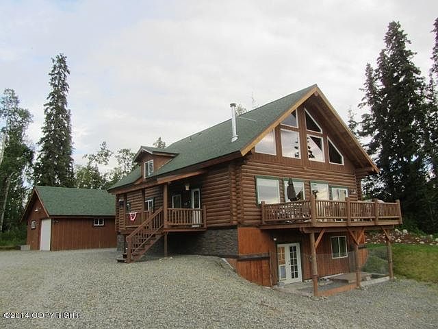 PANORAMIC MOUNTAIN & VALLEY VIEWS from this breathtaking, top quality log home. JUST 4 MILES down Funny River Rd. Master suite retreat has private balcony,tile shower & jetted tub. Immaculate home with cathedral ceilings & gorgeous finish work. 768 sf detached garage w/loft. Natural gas at the end of driveway! BELOW BOROUGH ASSESSED VALUE! Outside logs recently re-stained. FREE HOME WARRANTY!