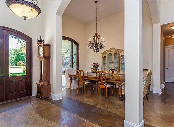 Room For All! Make your family comfortable in this 3-bedroom/2.5-bath home on 1.34 acres. Has a master suite with gas fireplace, separate shower, dual sinks, soaking tub, welcoming living room with wet bar, stained concrete floors, wood-burning fireplace for winter days, distinguished dining room, inviting kitchen with breakfast bar for midnight snacks, breakfast area, walk-in pantry, appliances included, granite counter-tops, home office for paying bills. This home is a must see!