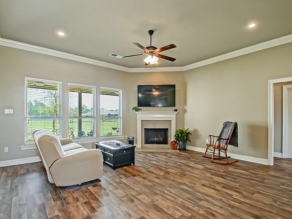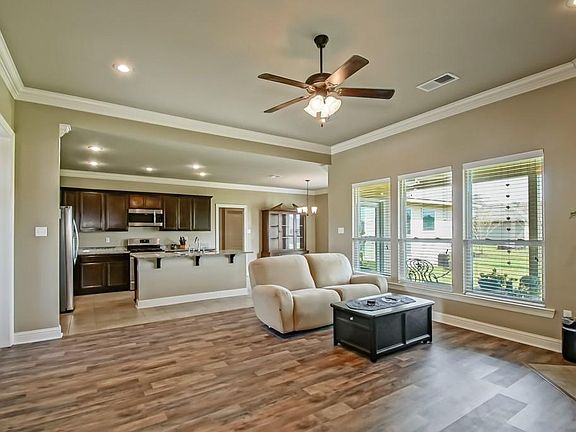 NO CARPET in this gorgeous, open, split floor plan! 4 bedrooms, 2 full baths, PLUS AN OFFICE! Covered patio overlooking the back yard. Yard opens to greenspace. Enjoy all of that fabulous greenspace without the extra mowing! Special features incl: Full slab granite counters in kitchen & baths, birch cabinets, stainless steel, natural gas package, including gas fireplace too, crown molding, jetted tub in primary bath, oil rubbed bronze trim & tankless water heater. PREFERRED ZONE X. Home has NEVER FLOODED.