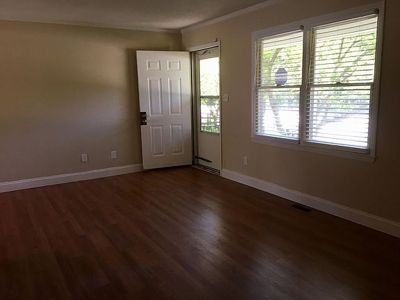 A large living room opens to the dining area. French doors lead from the dining area to a large deck that overlooks a private, fenced back yard. The kitchen has plenty of cabinets as well as a pantry. The large master bedroom has space for an office or sitting area. Good closet space is found in the master and other bedrooms. The master bath has a large, tiled custom shower. Both baths have been recently updated. Floors are hardwood and laminate. The laundry/utility room has additional storage space. Clean and freshly painted throughout. There is off-street parking. Tenant is responsible for all utilities (gas, electric, water/sewer/trash)