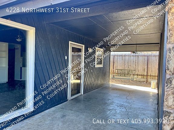 Treasure the opportunity to call this delightful home at 4228 Northwest 31st Street your own oasis in the heart of Oklahoma City. With three spacious bedrooms and two full baths, this 1404 sq ft residence offers a comfortable and inviting living space perfect for anyone seeking a serene retreat. As you step inside, you're greeted by a warm and welcoming atmosphere that invites you to unwind and relax. The thoughtfully designed layout maximizes space and functionality, ensuring every corner of this home is utilized to its fullest potential. Located in a vibrant neighborhood, you'll enjoy convenient access to all that Oklahoma City has to offer, from parks and shopping to dining and entertainment. Rent- $1,450 Deposit- $1,450 Application Fee- $65 PETS are approved on a case-by-case basis and will be subject to a 3rd party screening as well as a non-refundable pet fee and pet rent per pet. All Courtyard Properties residents are enrolled in the Resident Benefits Package (RBP) for $49.00/month which includes liability insurance, credit building to help boost the resident's credit score with timely rent payments, up to $1M Identity Theft Protection, HVAC air filter delivery (for applicable properties), move-in concierge service making utility connection and home service setup a breeze during your move-in, our best-in-class resident rewards program, on-demand pest control and much more! More details upon application. **BE AWARE OF SCAMS WE DO NOT MARKET ON CRAIGSLIST OR FACEBOOK MARKETPLACE** Brokers make an effort to deliver accurate information, but perspective applicant(s)/tenant(s) should independently verify information on which they will rely in a transaction. All properties are subject to prior lease closing, change, or withdrawal. Neither Courtyard Properties nor any listing broker shall be responsible for any typographical errors, misinformation, or misprints, and they shall be held totally harmless from any damages arising from reliance upon this data. This data is provided exclusively for consumers' personal, non-commercial use and may not be used for any purpose other than to identify prospective properties they may be interested in leasing.