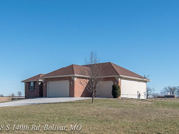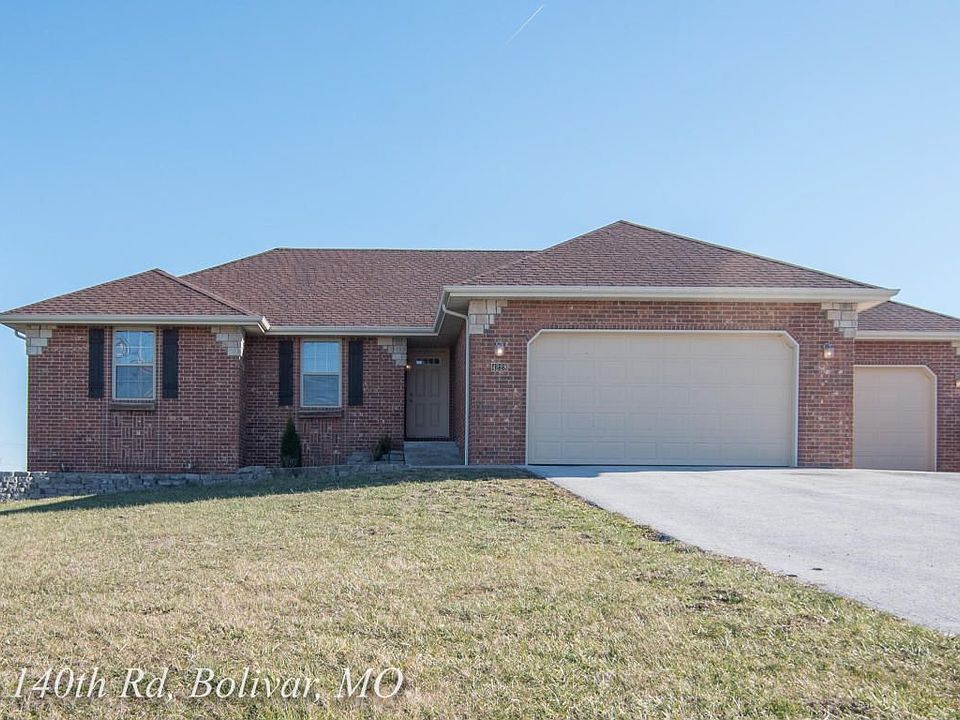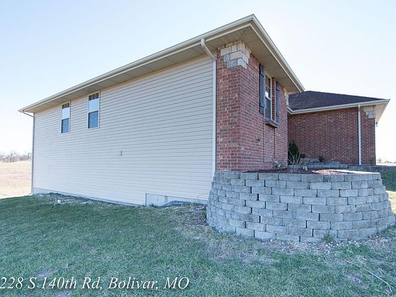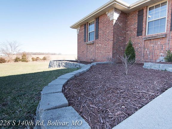 4228 S 140th Rd, Bolivar, MO 65613 Finished walkout basement home on 2 1/2 acres just minutes from the Bolivar High School. Brick front, vinyl sides, tile floors in kitchen, baths, laundry and entry, 6 panel solid wood interior doors, wood burning fireplace, jetted tub, walk-in shower, double vanities and two walk-in closets in the master suite. Microwave, smooth top range, raised ceiling fans, attic fan, deck, 3 car garage with one stall 29ft deep. (Measurements are rounded. Buyer to do their own due diligence. Seller closes at Great American Title only. Buyer may use title company of their choice. Seller will not pay any additional fees for the Buyer for a split closing.)