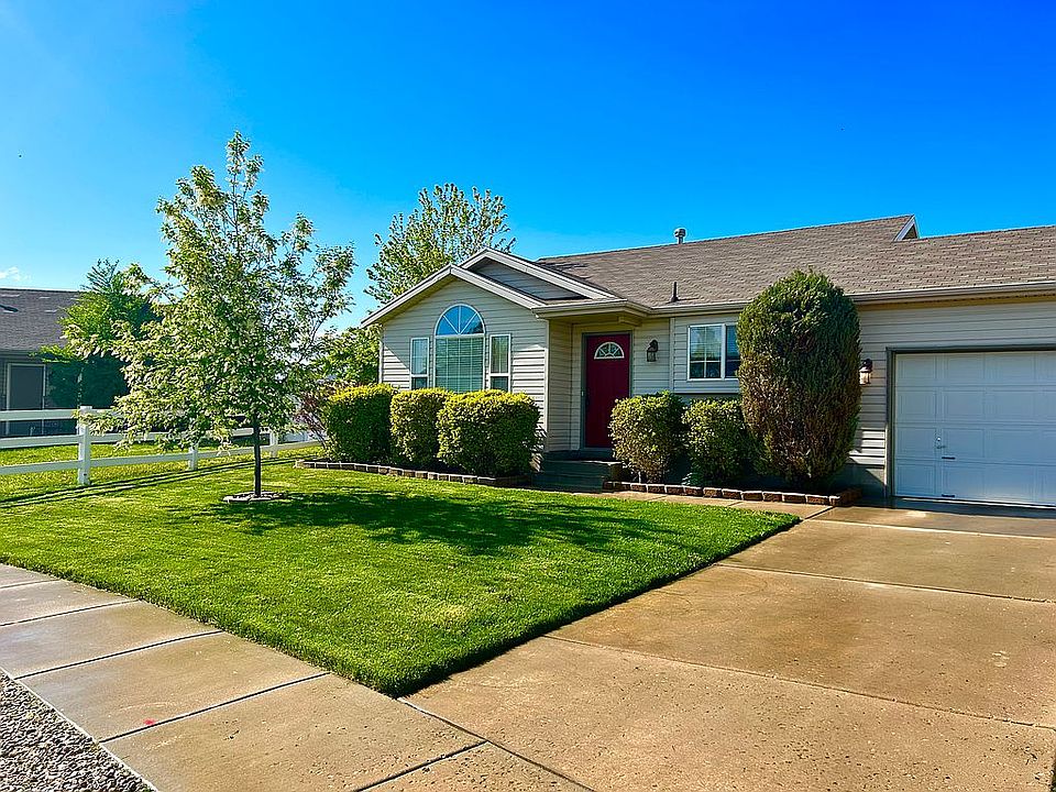 MOVE IN READY! Fantastic 1 Story Ranch home in a quiet, friendly neighborhood. It is very clean, and one of the nicest in the area. Great layout, 3 bedrooms, 1 bath, large living room, with fresh paint and updated kitchen appliances, (All energy saving electric.) Beautiful, fully landscaped and fenced yard, with a gate, perfect for kids, and pets. Programmable sprinkler system on secondary water. Large 16 x20 Trex deck, basketball court, custom 12 x 12 high ceiling shed, large custom firepit, and mature trees and shrubs. RV or trailer parking on 10ft X 60Ft thick gravel pad. Currently a 1 car Garage (But technically 2) split in half with a 10 x 20 office. Formerly a recording studio, it has electric, internet connections, and window AC, add a cozy space heater in the winter. Perfect for remote office work, storage, craft room, or anything you can think of. Racedeck tiles cover 1 half of the garage floor to easily clean tough spills, or stains, for the mechanic or motorsports enthusiast. This home has been very well taken care of over the last 17 years, and is a rare find in this market.