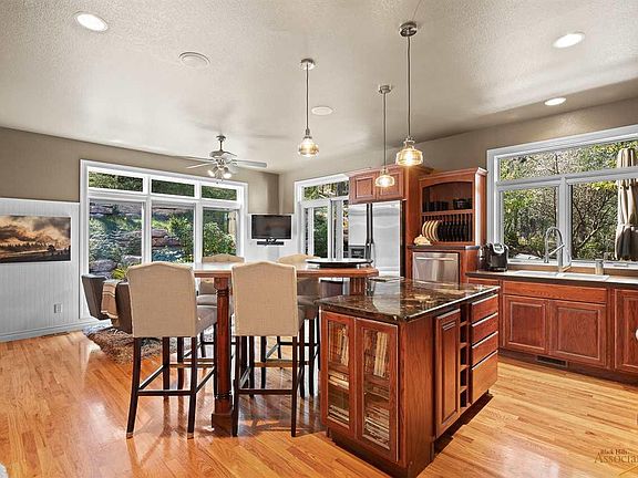 Location, location, location! This 2.2 acre forested resort is private and secluded yet in town, minutes from everything. No expense was spared in the construction of this gorgeous one owner 4 bedroom, 4 bath home. Custom landscaping, retaining walls, concrete roof tiles, epoxy garage floor, outdoor stone fireplace, Pella windows, beautiful waterfall feature, gas for firepit and grill to deck, custom storage in the garage and in storage room. This "House Beautiful" home is tastefully decorated; you will find vaulted ceilings, a two zone furnace, two fireplaces, windows with high end interior shutters, tile and hardwood floors, walk-out lower level and central vac. For outdoor living at it's finest, the sound system, that will stay, goes to every room and outside so you can watch TV under the stars. No other home is like this one! You can't build this home for this price. Check out the virtual tour.