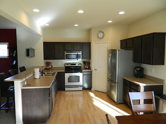 This sparkling 3 bedroom 3 bath home in like new condition is situated at the end of the street and backs to trees. The spacious kitchen has trendy dark cabinets, huge pantry and flows directly to the dining room where you can host large family dinners. The living room has a cozy gas fireplace and a ½ bath finish off the main level. Upstairs there are 3 spacious bedrooms, 2 bathrooms and a laundry room that is ideally located. The master bedroom offers a walk in closet, tray ceilings and ensuite bath. The unfinished basement has 2 daylight windows, stubbed for a bathroom, has lots of potential for future finish or already a perfect play space for the kids. The designer paint, custom window treatments and white trim throughout finish off the inside of this home. The backyard has trees for privacy, there will never be a neighbor living in your backyard, and the deck is a great space for relaxing outdoors. 2 car attached garage finish off the features of this well kept home!