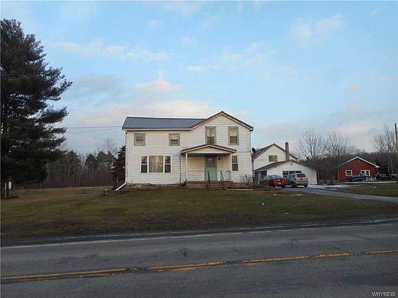 Farmhouse with 4 acres is waiting for a new owner. Huge eat-in kitchen w/tons of cupboards & sliders to deck. Huge living room could be split for living & dining; it's that big! Built-in bookcases in living room. Every man's dream pole barn (24x19) w/concrete floor. The other buildings were former greenhouse, workshop & showroom. House and buildings have metal roofs (2010 & 2013). Heat and electric in all but pole barn. Plenty of room to roam and become a "gentlemen" farmer! House comes w/farm stand! With some TLC this will be your dream home!