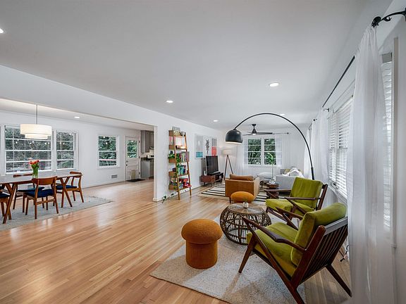 Clean lines and an open floor plan are just the beginning of this fantastic mid century home, in historic Forest Park! The large formal living room and dining room are filled with natural light. Gleaming real hardwood floors throughout. A family room relates so well to outdoor entertaining around the sparkling swimming pool. Kitchen cabinets are topped with granite counters, gas cooking and loads of storage. The spacious primary bedroom suite offers two closets and a renovated full bathroom trimmed in classic black and white tiles. Roomy guest bedrooms share the second renovated full bathroom, with marble topped vanity. Enjoy the shaded and private rear deck. Single car garage and excellent storage on lower level. Location is perfect, minutes to UAB, Avondale park/entertainment and a short stroll to Forest Park village.