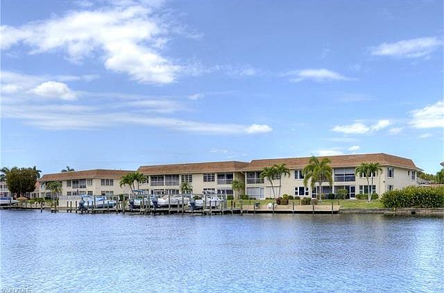 IF YOU LIKE FISHING AND BOATING COME AND LOOK AT THIS BEAUTIFUL CONDO. Walk out your back lanai and catch lots of fish. You have a boat slip with SAILBOAT AND GULF ACCESS WITHIN MINUTES. This is a 1st floor, corner unit, which gives you have a lot more light. All windows have been replaced with high impact windows. Kitchen is very open and has been updated with lots of cabinets for storage and granite counter tops. Just a short walk to Jaycee Park. Great location. Close to both Veterans Parkway and Cape Coral Parkway. WATER VIEW from back and side windows. THIS IS A 55+ COMMUNITY
