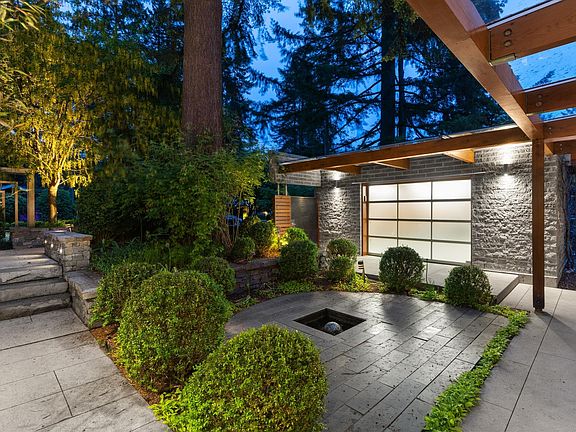 Walk thru beautiful one-of-a-kind front garden & then enter custom built home that will be your personal oasis. Architectural details & wonderful light abound, the main floor opens up to reveal the semi open plan kitchen that leads into elegant LR w/ eclipse doors out to very private outdoor entertainment space- multi-tiered terrace w infinity pool, hot tub, outdoor kitchen/dining/lounge all overlooking natural treed view. Main floor encompasses private DR, den & more. 2nd flr comprises striking primary bdrm w/vaulted ceilings, gas fireplace, w/i closet, spa ensuite w/steam, + 2 extra bdrms & extra bath. Home is surrounded by positively breath-taking gardens including a stunning terraced rear garden! Single garage. This home must be seen in person to be truly appreciated.