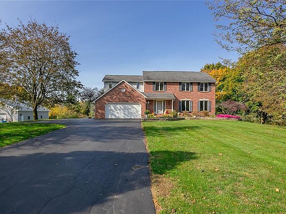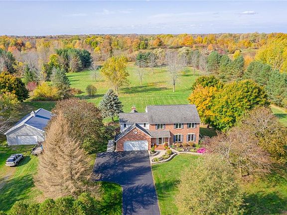 Outstanding Custom built 5 bedroom (plus an upstairs office) 2.5 bath colonial on over 5 acres! You'll love the kitchen fit for a budding chef with Porcelain Italien tile flooring, Commercial grade Viking six burner oven range & hood, solid surface counters & brick surround! Snuggle up on those cold winter evenings next to the the adjoining family room with woodburnng fireplace insert! Enjoy Summer cookouts on the 16' by 32' concrete patio with gorgeous views of the surrounding hills! A full footer underneath would allow a future addition or great room! First floor laundry & mudroom! Cathedral ceilings in the master bedroom, 2nd bedroom & family room! Pella windows, hardwood floors, six panel doors & California closets throughout! Partially finished basement rec room! Those who enjoy the outdoors or hobbiests will love the 30' x 40' barn/workshop with concrete floor, elect, water and gas line! Numerous mechanical updates since 2003. New Furnace, washer, dryer, dishwasher, & refrigerator in 2019. Tastefully landscaped with two tiered vegatable garden. Effective year built 2003.