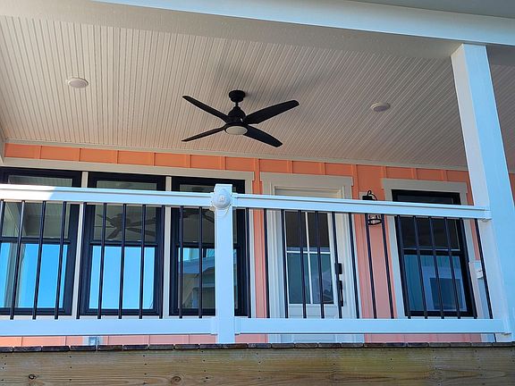 Upgraded materials and appliances were thoughtfully selected to give this cozy coastal home a big luxury feel. You will even enjoy seeing a little bit of the ocean from your living area or from outside on the covered porch! Substantial interior & exterior remodeling has just been completed February 2024. Some of the new exterior features include all pilings, stairs & decking with decorative vinyl & black aluminum railings, Hardie board and batten siding, doors & hardware, SilverLine double hung dual glazed black vinyl windows, LED light fixtures, enclosed storage area with double door for golf cart, full concrete pad under home, driveway rock, keyless entry, and new roof. New interior features include white tongue in groove plank ceilings in kitchen & dining/living areas, Trucor LVP flooring, Delta faucets/fixtures, tile step-in showers, Minka Aire ceiling fans, LED lighting, GE stainless steel appliances including French door fridge and convection air fry glass top range, dishwasher, Whirlpool microwave, vent hood, gorgeous navy Shaker soft close cabinets with under cabinet lighting, decorative hardware, pull-out shelving, pull-out trash cans, double pantry cabinet, large island with extra storage, beautiful quartz countertops, white double farm sink, tile backsplash, built-in banquette seating with storage, LG laundry center front load washer & dryer. Also new are the 16 seer Daikin HVAC system with smart thermostat, ductwork, Rheem water heater, all drywall and insulation including insulating interior walls, plumbing & electric.