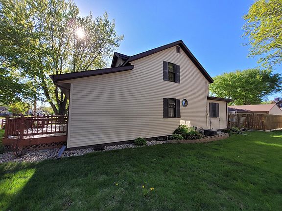 PRICE REDUCED! Love the curb appeal on this beautiful 4 bedroom/2.5 bath home! Located on corner lot with fenced in backyard, cement patio, storage shed & oversized double garage. Kitchen has oak cabinets, updated counter tops /back splash, pantry, coffee bar, and dining bar into dining room. Spacious & open concept with dining and living room. Attractive bay window in living room provides plenty of natural light. Spacious master bedroom with double closets, full bath and extra room used as walk in closet. Upper level has 3 more bedrooms with full bath. Lower level is partially finished with family room, utility room with 1/2 bath, & plenty of storage room, and basement floor has been newly painted. Relax in the fenced in backyard patio or on the front deck has also been newly painted.