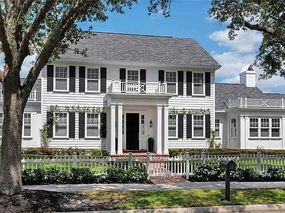 Nestled on the estate-lined street of Arbor Circle in Celebration's Main Village, this custom Colonial home boasts an open floor plan with 5 bedrooms and 6 bathrooms. The first floor features a primary suite, while the second floor offers three en-suite bedrooms. A fifth bedroom above the garage includes a junior kitchen, full bathroom, and living area, ideal for a private office or guest suite. The chef-inspired kitchen is equipped with a 48" Viking gas range with griddle, custom-built range hood, Viking built-in dishwasher and microwave, separate Gaggenau freezer and refrigerator with custom cabinetry panels, Sergay cabinetry from New York, Calcutta Gold quartz countertops with an oversized island, Restoration faucets, and pendant lighting. A built-in custom serving station with two beverage coolers and a Miele coffee/espresso station completes the kitchen. The main floor master suite includes a large custom walk-in closet, marble master bathroom, massive marble zero-entry shower, expansive floating vanity with dual sinks, and a large porcelain vessel soaking tub. The home features one of the largest pool decks in Celebration, finished with 2,200 sq. ft. of marble, new pool equipment, and a covered lanai. Additional highlights include a custom staircase, custom lighting, new AC units, new roof, and a custom-designed white picket fence. Located within a short leisurely stroll to downtown Celebration, this home offers true elegance. ** Owner will consider owner financing with below rates