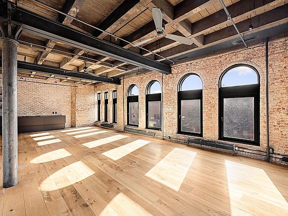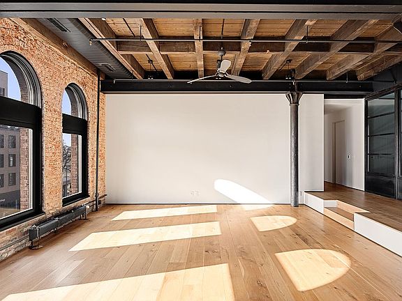 The apartment itself is magnificent with soaring ceilings over 12’ high, TRIPLE-GLAZED windows, walls of white-washed red brick, exposed steel and timber columns, 12” wide heart pine floors, floating walls, and 7 floor-to-ceiling windows just in the living room! This apartment is so quiet that you can hear a pin drop, and also offers South-facing windows with skyline views and incredible sunlight from dawn to dusk. Enjoy a Daikin central heating AND cooling system, in addition to the already existent gas hot-water system (covered in your common charges). Currently configured with 2 beds and 2 baths, this home is so large that a 3rd bedroom can easily be added without disturbing any of the drama of the current living space.