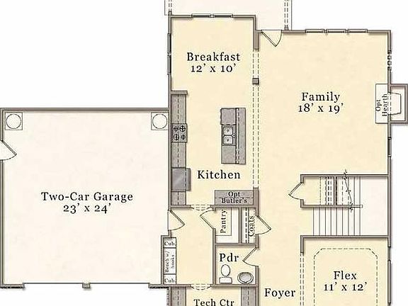 This is the BEAUFORT. Formal Dining. Main level TECH CENTER/OFFICE. REAR Porch for outdoor living. Granite kitchen has large island out looking Family Room. MUDROOM with built-ins. Laminate flooring throughout all Main Level Social Areas. Walk-up Attic can make a Fifth bedroom option. Knightdale Station City Park is across street with YMCA pool!!