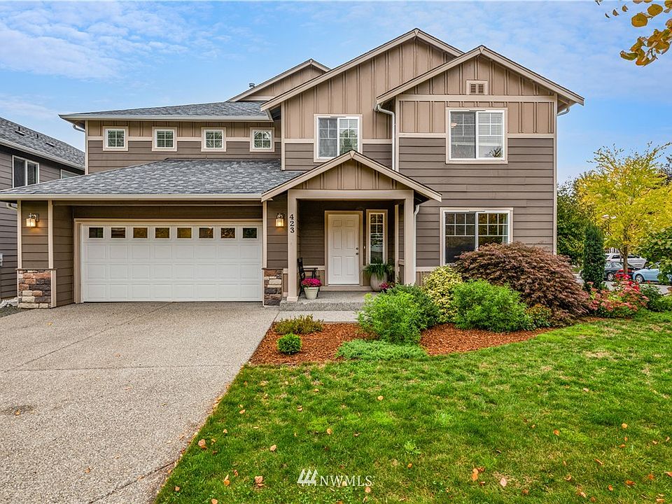Expansive 2-story w/over 3,000 sf of living space. Generous kitchen w/quartz counters, stainless appliances, gas range, farm sink & custom floating desk for mini-office. Great room has cathedral ceilings & gas fireplace. Custom bookshelves in dining room. 1 bedroom on main floor could be used as office or play room. 4 bedrooms upstairs. Master suite w/5 piece ensuite bath & huge walk-in closet. 3-car tandem garage w/ pass-through overhead door that opens to fully fenced backyard. Big vegetable/flower garden w/drip irrigation in back. All of this & air conditioning, too. A quick 3 miles to I-5.