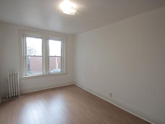 Apartment Features: First floor apartment features: two bedrooms, high ceilings, lots of windows and tons of natural light. Recently refinished hardwood floors. Outdoor patio with sliding door. A fully equipped kitchen with plenty of storage and built in cabinets. Two decorative fire places. Heat is included with the price of rent. On site laundry facility. Large back deck and shared yard. Cats are permitted. In addition to the monthly rent, tenant is also responsible for electric. All of our apartments are non-smoking. Property Info: This Neo-Classical 20th century medium rise apartment building contains many spacious rooms with high ceilings. Bright daylight is received year-round through large picture windows. At four stories it is one of the tallest buildings in the neighborhood rising just above the treeline with some spectacular views of the surrounding neighborhood, rolling hills, and river valleys. Tenant is also responsible for electric
