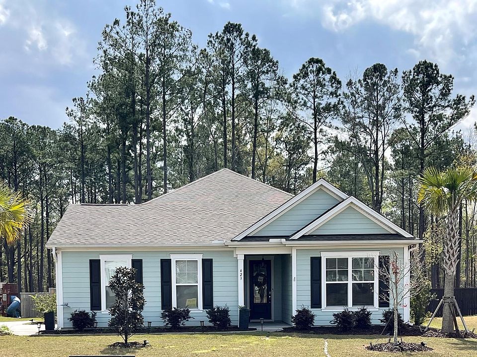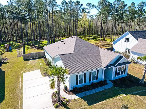 This one-story home lives spaciously with high ceilings and an open concept living area, gourmet kitchen and dining area. Cozy up to the gas fireplace or dine while enjoying the view of the 0.66 acre wooded lot through the wall of glass sliders. These open to the screen porch, stamped concrete patio and bonfire pit area. The relaxing water feature easily turns on with a remote and will give you hours of peace. Gather your family and friends in the main room around the enormous kitchen island or the dining area. The roomy owner's retreat enjoys a large bath and double walk-in closets. Two of the guest rooms are on either side of the guest bath and the third guest room is across the hall.The fully fenced in and beautifully landscaped yard with irrigation system, cul-de-sac and side entrance 2 car garage all add to the privacy of this lot. The neighborhood amenities include a resort-style pool, playground, crabbing and fishing dock, canoe/kayak launch from beach, dog parks, fire pit and covered pavilion. A $2,400 Lender Credit is available and will be applied towards the buyer's closing costs and pre-paids if the buyer chooses to use the seller's preferred lender. This credit is in addition to any negotiated seller concessions.