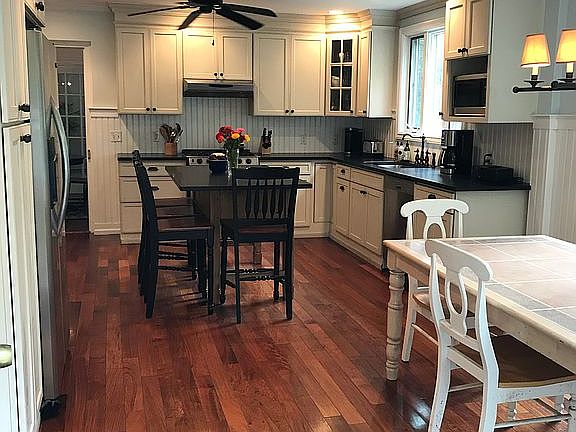 - RoomKitchenFeatures: Center Island, Granite/Stone Counter, Kitchen/Dine, Fireplace - Woodburning