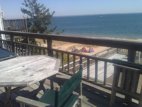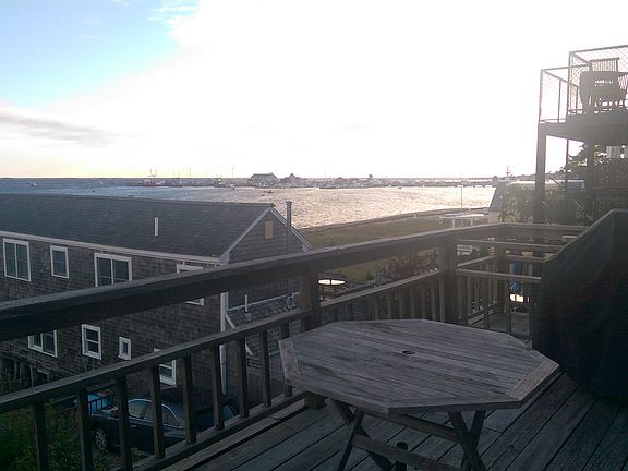 Breathtaking water views of Provincetown's harbor, fishing boats, Long Point and the breakwater from this top floor 2-bedroom, 1 bath waterfront unit in the gallery district at Breakwater Condominiums. Wonderful open floor living with exposed beams and double set of sliders leading to an expansive deck for summer entertainment. Galley kitchen off living area. Master bedroom on waterfront side provides the perfect place to watch Provincetown's sunrises and has sliders to the deck. Laundry, 1 car parking, sectioned basement storage and metered oil heat included in condo fee. Small four unit association with allowance for weekly rentals and pets for owners. This unit is available for immediate summer occupancy.