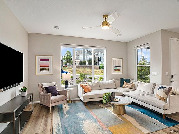 Welcome home to this amazing home in Castle Pines! Only being a few years old, this home is very modern and stylistic, with premium finishes and details. Walk into a bright, open-concept floor plan with a big living room and eat in kitchen. The gorgeous flooring is a light oak color was just re-done about 1 year ago (Ezra Oak by Shaw brand LVP). Kitchen has beautiful, white quartz countertops accented perfectly by sleek grey cabinets with updated hardware and light fixtures. They also added artificial grass outside in the fenced yard for pets. Window coverings added throughout including an electric blind on the slider door to outside. Upstairs has a lot of space including 3 bedrooms, a loft, and an upstairs laundry room! The primary bedroom upstairs has a professionally painted accent wall and built-in shelf, black-out shades, a walk-in closet, and large attached bathroom with two sinks. The second bathroom upstairs also has two sinks and a bathtub. The basement was professionally finished and features a huge flex room that is currently being used as a bedroom/living room combination. It has great space including a large closet, egress window, and a really nice bathroom with shower. With the home being newer, there were also some green features built in such as a tankless water heater and specially insulated attic. The community is amazing and includes a park and they do a lot of community events. They even shovel the snow all the way up to your door in the winter. Located close to dining, groceries, multiple golf courses, library, and a quick jump on I25.