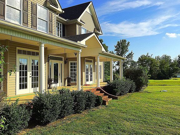 This 4BR, 3 1/2 Bath open floor plan home is situated perfectly on 2.64 acres w/ sprawling porches on front & back, huge private master suite w/ his & her closets, spacious rooms, gorgeous hardwood, natural light throughout & detached storage building.