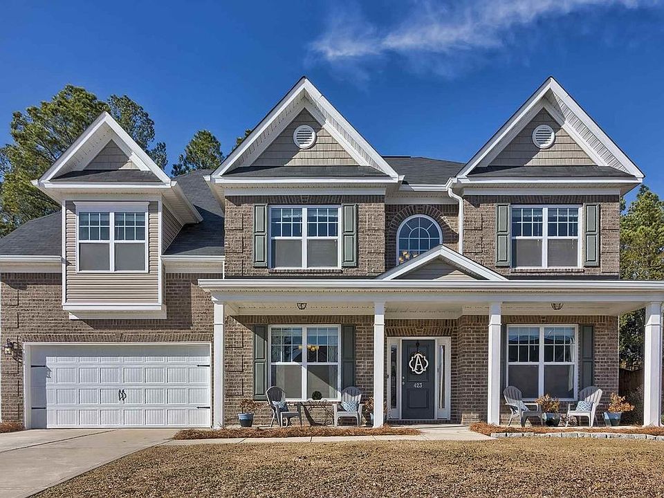 Looking for more space? This home has it! Enjoy rocking on the wide front porch in the evenings or create your own oasis in the private fenced back yard! The grand 2 story entry has beautiful wide plank walnut hardwood floors that run throughout the 1st floor living spaces! The front open room can serve as 2nd living space, office or playroom. Formal dining room for large gatherings has judges panel and gorgeous crown molding! Butlers pantry has added storage including upper and lower cabinets with wine rack! Open concept great room with coffered ceilings, gas fireplace and eat in kitchen with giant island, beautiful granite counters, tiled back splash, extra recessed and pendant lighting, stainless steel appliances featuring a gas range double oven and a convenient and large walk in pantry! Downstairs large bedroom adjacent to a full bath! Grand master retreat upstairs including sitting room with full closet for extra storage, master bath with 2 full walk in closets, garden tub, water closet and separate shower! 3 more large bedrooms with high ceilings and spacious closets share 2 full baths with a great layout you'll want to see! The BONUS is the recreation loft including pool table w/equipment and ping pong top! Plenty of room to entertain in this home! Premium garage rack and storage shelving installed! 2" blinds! Low HOA! Home Warranty! 100% Financing Option!