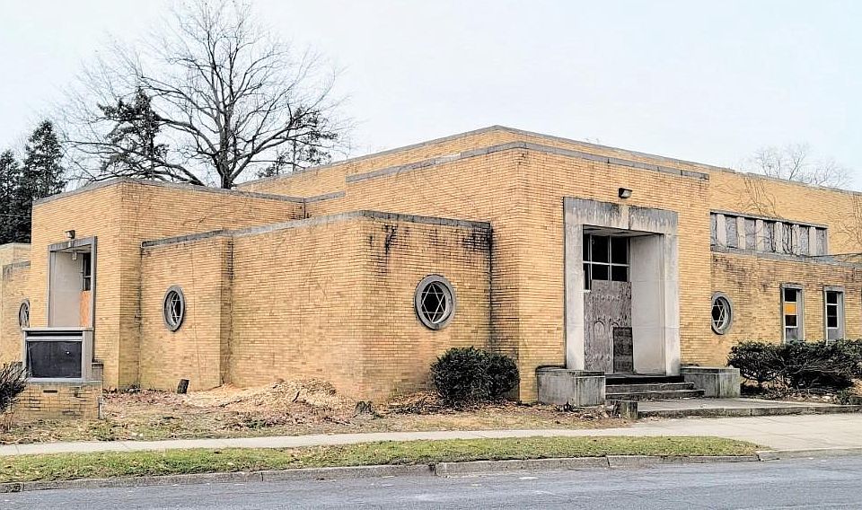 Bldg Available for Adaptive Reuse- church, office, recreation. Former synagogue building, 20,000 sf +/-, suffered fire in 2009. Estimate for repairs avail. Main Space approx. 20' clear clg, seats over 400 in pews. LL mtg space-stage, clear span across room, clgs over 13', seats over 200 at tables or 350 aud. style. Fully equipped kit adj to large mtg space. 6 classrooms on LL.