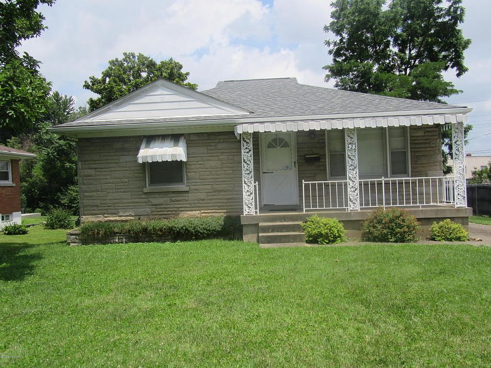 2 Bedroom, 1 Bath, well-built stone ranch with aluminum siding on overhang & around windows. Spacious living room, dining room, eat-in kitchen equipped with range & refrigerator. Other features: * Hardwood floors * Covered front porch * 1 Car concrete-block garage