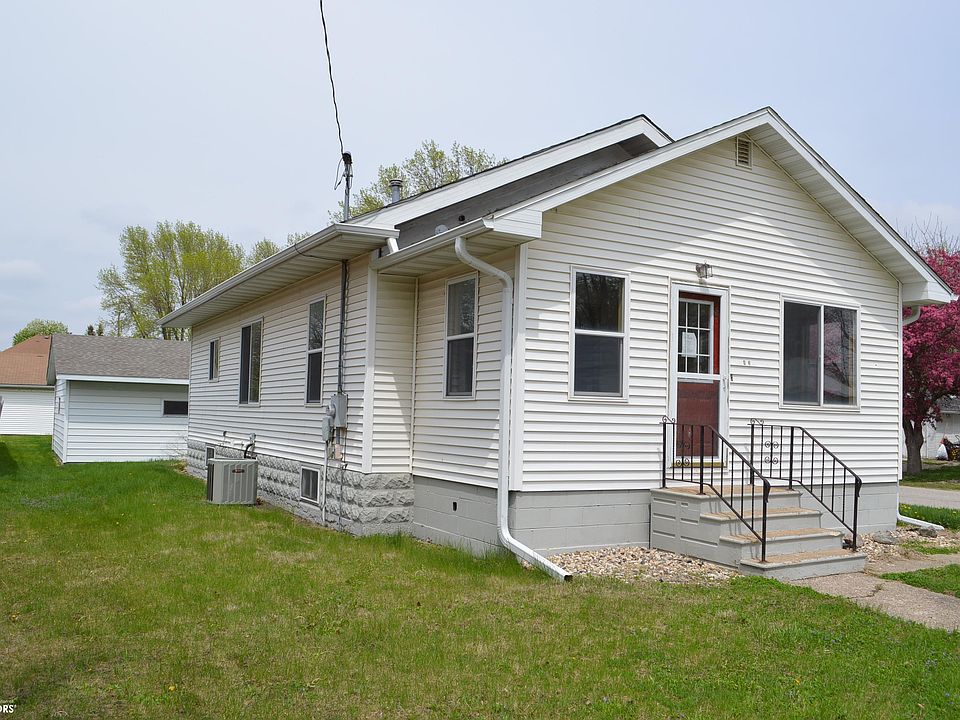 CUTE 2 bedroom bungalow. Recently refreshed with interior paint, floor coverings and fixtures. Open lay-out, large full bathroom including main floor laundry. Full basement, enclosed front porch and detached 2 car garage. Exterior has good roof and vinyl siding. A great move-in ready option as a first home or to downsize. Check it out soon!