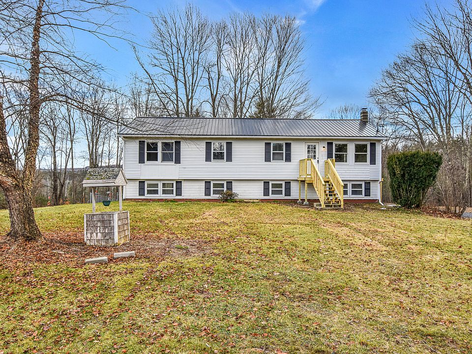 Spacious split level home in private setting with many recent updates. The main living area welcomes you into an open living and dinning area off the large kitchen. Second floor patio off of the dinning room, perfect for summer entertaining. You'll also find the spacious primary bedroom with private bathroom including laundry, two additional bedrooms, and a full bathroom. On the lower level enjoy a second living area complete with wood stove for supplemental heat, two bonus rooms which would make for great office space, another full bathroom, and utility area with work benches and direct walkout access to the back yard. Recent updates including, new roof, new boiler, and new septic system ensure a comfortable low maintenance home for years to come!