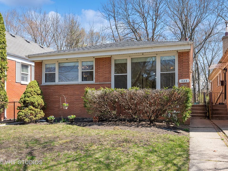 Welcome to 423 Florence. Enjoy convenient one level living in this solid brick step ranch home that has been recently refreshed and updated for today's buyer. You will enjoying the brand new kitchen featuring new: white slow-close cabinets, stainless steel appliances, counters, backsplash, tile floor and lighting. The living space is sun-filled with an L-shaped living room and dining room both with hardwood floors. Baths have been refreshed with new vanities, faucets, tile-work, toilets, tub and flooring. The hardwood floors continue down the bedroom corridor to 3 nice size rooms one with hardwood and the other 2 featuring brand new carpet (hardwood under). The basement is the same footprint as the main level. While unfinished, it is freshly painted, clean and dry. There is plenty of space and head room to create a recreation room, office or both. In addition, there's a bonus shower in the basement which could be used as a dog bath area or incorporated into a future basement bath. The yard is deep and adjoins the alley. The roof is from 2016, there are many newer windows and fresh paint throughout. Enjoy Evanston's award-winning drinking water delivered through a new copper water-line. This is a peaceful location on a cul-de-sac conveniently located minutes from all schools, James Park, Levy Center, Robert Crown Center & library, Quad Indoor Sports, groceries and retail. The 2021 tax bill includes a senior freeze. This was a $5,516.17 reduction, please take this into consideration when calculating payments. Move in and enjoy!