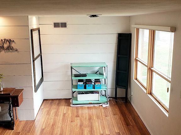 With approximately 2,050 sq. ft finished, this home has had an interior facelift with modern-day trends of shiplap, wooden accent wall, and pops of color to give the upstairs a farmhouse chic feel. Kitchens new tile and wooden backsplash compliment the refinished cabinets, updated hardware, and one-year-old slate refrigerator. Counter adds additional space for eating meals, food preparation, or more. Pergo laminate flooring leads into and throughout the hallway and bedrooms. Bedrooms contain additional storage with original built-ins that remain sturdy with new paint and hardware; upgraded light fixtures and pops of color complete the bedroom upgrades. The full bath is brightened up with tiled floor and new paint. Adequate space and storage will keep the morning routine inflow from day to day. Two of the basement bedrooms have additional insulation and new drywall along with Pergo laminate flooring. The fresh paint gives it spunk and personality.