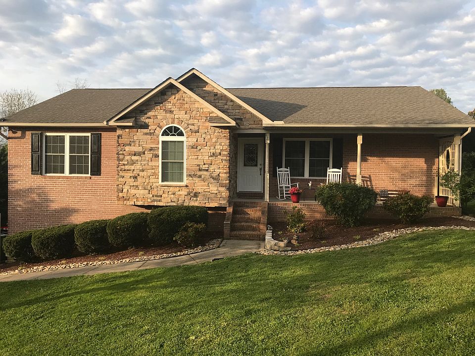 Owner/Agent. Maryville city schools, Brick/stone front. 3 bedrooms, 2 1/2 baths, open dining kitchen living room breakfast nook floor plan, huge master bedroom with large walk in closet and covered private deck, office space off the garage with separate entrance and two large windows, additional large deck off the living room, finished partial basement with fireplace, new low E windows upstairs, Vaulted ceiling in open floor area and master bedroom, ceiling fans throughout, basketball court, shed