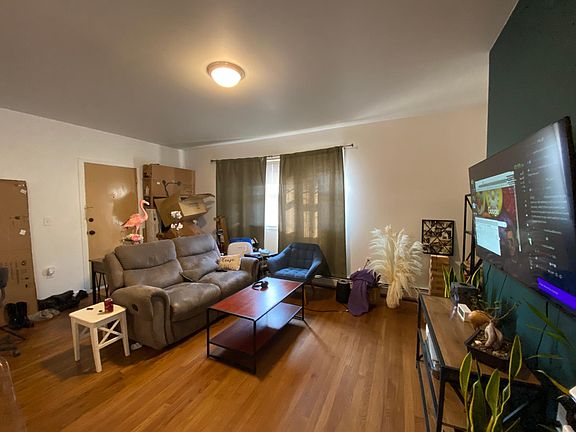 Landlord pays fee! Great 2 bedroom with large living room, kitchen, and good sized bedrooms! This unit is located on the main level, so no walk up! Open kitchen/living room combo has enough room for a large sectional and dining table. Bedrooms are both great sizes and have good closet space. Close to the light rail which connects to the PATH and JC. Small dogs and cats ok! Available February 1st! Water, trash, sewer included. Tenant pays heat, electricity and cooking gas.