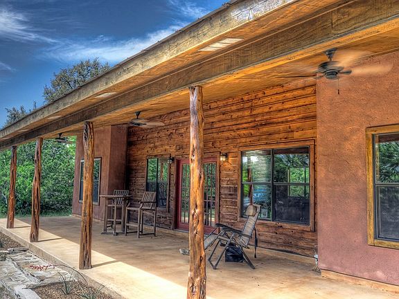 Enjoy country living at its finest in this comfortable hill country home tucked away on 5.3 acres. Privacy, peace, and quiet abound and no neighbors can be seennor can they see you! Stained concrete floors, limestone countertops, beautiful red stone in baths, and galvanized metal touches throughout all work together to create a rustic charm that works perfectly for the area. Outside, enjoy the huge, covered front porch and around back light up the firepit and stargaze on a cool evening. The proximity to Garner State Park and Leakey make this location very desirable.