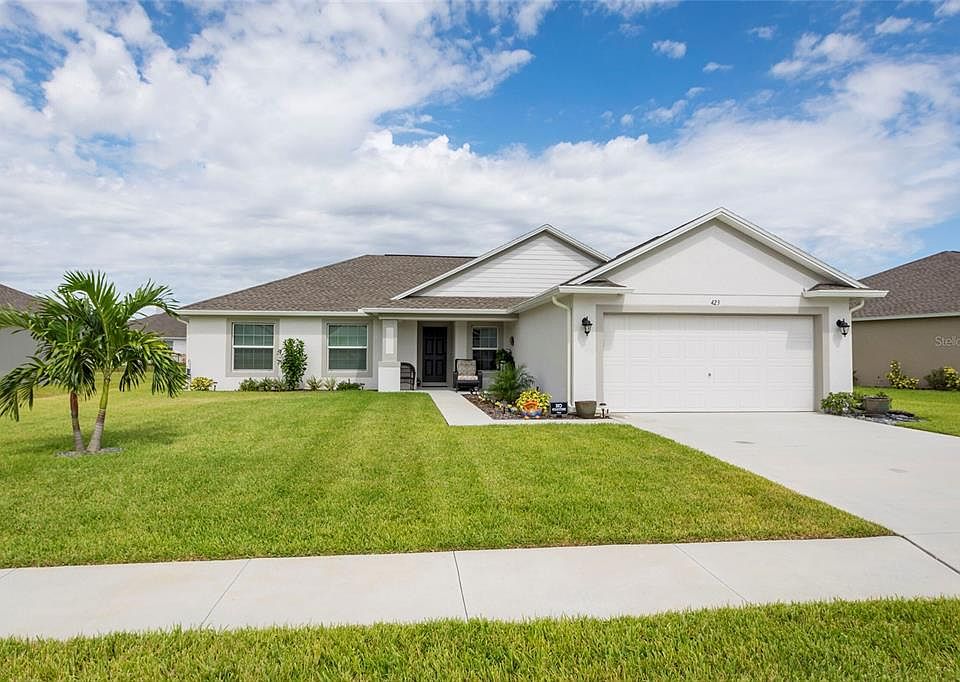Welcome to Your Cozy Retreat: Embrace Relaxed Living in this Charming Savannah Model by Southern Homes. Nestled in the serene Sanctuary By the Lake of Winter Haven (DIRECTLY BETWEEN ORLANDO AND TAMPA) this custom-designed home invites you to experience a tranquil lifestyle. Thoughtfully enhanced for comfort and ease, this residence exudes a sense of charm. Upon entry, the kitchen welcomes you with elegant GRANITE countertops and soft under-counter lighting, setting the scene for delightful meals and laid-back gatherings. Each room, adorned with ceiling fans and subtle dimmer switches, creates a cozy ambiance perfect for unwinding. The master suite serves as your haven, featuring a serene TRAY CEILING and a CALIFORNIA CLOSET UPGRADE, offering ample space for your personal retreat. Step outside to your private outdoor sanctuary—a covered back patio invites you to relax under a refreshing ceiling fan. With the potential for an outdoor kitchen and convenient laundry sinks, it's an ideal spot for leisurely afternoons and enjoying the pleasant surroundings. Noteworthy upgrades include an advanced irrigation system, energy-efficient LED lighting, and luxury vinyl flooring, ensuring low-maintenance living. Don't forget to bring your water toys and launch them off the COMMUNITY DOCK from Lake Rochelle, or let the little ones play all day in the community PLAYGROUND. For added peace of mind, this home comes with WARRANTIES on essential appliances and the foundation, providing assurance as you settle into your new abode. With its laid-back layout and thoughtful upgrades, this property offers a comfortable retreat, perfect for embracing a relaxation. Come and experience the inviting charm of this home—schedule your private showing today and envision the tranquil lifestyle it offers!