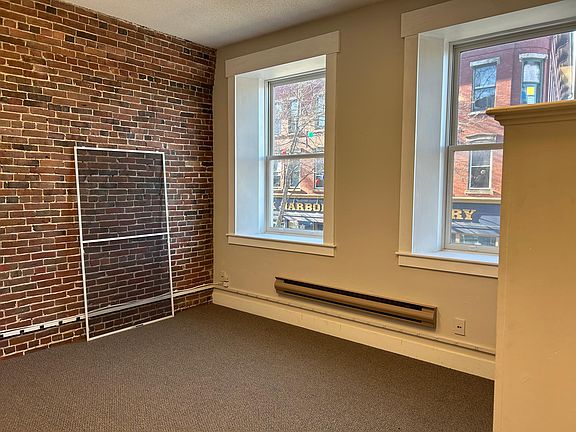 Office space for rent. Beautiful second floor. New carpet. Fresh paint. Beautiful brick walls. Heat and electric included. 2A and 2B are both available; each has their own bath and there is a connecting door to allow for both units to be rented as one office space