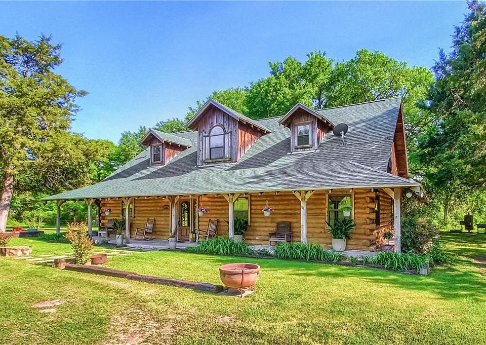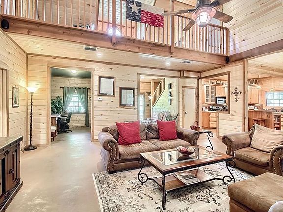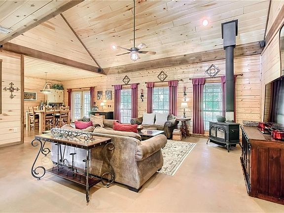 27 acres and gorgeous log home nestled in a private setting.Great location. Home features beautiful wood walls, tons of windows for nature views & light, Big cool wrap around porches. Master suite downstairs w/ large master bath w/jetted tub & big shower.Adjacent is a nice office that could be a fourth bedroom. Big open living, dining and kitchen with oversized utility room. Upstairs are 2 bedrooms, bath and loft living area. Land is beautiful and could have more selective clearing for pasture if desired.