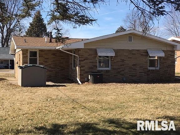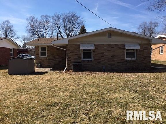 Attractive three bedroom brick ranch home. One full bathroom, with shower stall. Large living room, has room for dining area. Eat in kitchen with oak style cabinets. Some replacement windows. Newer style furnace and A/C unit. One car attached garage. Front porch. Small concrete patio area in back of home. Alley access to back yard. Convenient location.