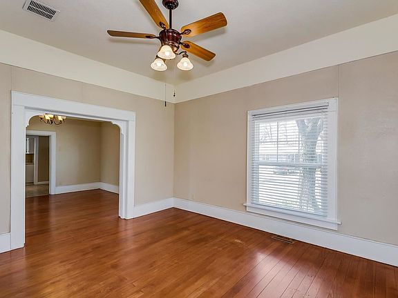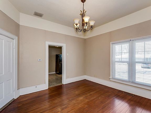 Sit back on your large covered front porch and enjoy the parades as they stroll by! Great location for city activities, shopping, restaurants, city park, library and more! Enter the home through the original front door onto original hardwood floors. Between the Living and dining room under the trim are the original pocket doors. Home feels so spacious don't let the square feet fool you! split bedrooms with original floors under the carpet. Owner's suite has two closets. Main floor separate laundry/mud room with washer and dryer. Cellar store the mechanicals and has room for lots of storage. Large corner lot with mature trees and plenty of parking.