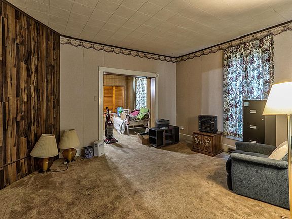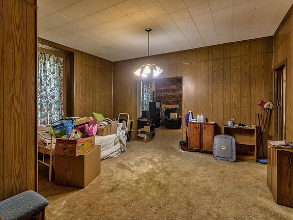 Welcome to this charming 2 bedroom, 1 bathroom home located in Boonville, IN. As you step inside, you are greeted by an enclosed porch, perfect for enjoying your morning coffee or relaxing in the evenings. Through the front door, you will find yourself in the spacious living room, featuring carpeting, tall ceilings, and a beautiful brick fireplace that adds a touch of warmth and character to the space. This is the perfect spot to gather with family and friends or cozy up during the colder months. Adjacent to the living room is the generously sized dining room, also adorned with carpeting, providing ample space for hosting dinner parties or enjoying everyday meals. The dining room seamlessly flows into the kitchen, which offers plenty of cabinet space to store all your culinary essentials. The two bedrooms in this home each boast carpeting, large windows that allow natural light to flood the rooms, and ample closet storage to keep your belongings organized and easily accessible. Conveniently located off the kitchen, you will find the laundry room and a full-sized bathroom, offering both functionality and convenience for your day-to-day needs. As you step outside, you'll discover a backyard with plenty of parking options. The large driveway, detached 2-car garage, and extra carport provide ample space for multiple vehicles, ensuring you and your guests never have to worry about parking.