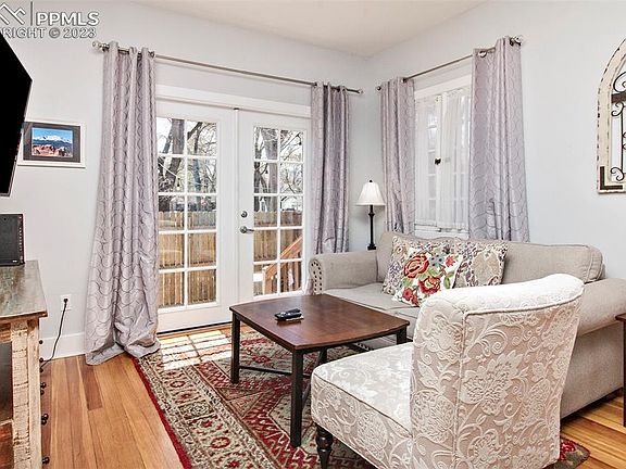Adorable cottage with old time charm on a quaint tree lined street * Pleasant and welcoming covered front porch * Bright and cheerful home * Beautifully remodeled and well cared for * New bath, granite kitchen counters, new cabinets, pantry and all appliances * Warm wood flooring * Dining area open to the Living room * Bedroom has adjoining nook for office or sitting area * French doors off the living room lead to a private flag stone patio with lighting and a water feature that is enclosed with a privacy fence * Low maintenance yard * Tall mature trees gracefully surround the home and patio * 1 car detached garage * Clean partial basement that is great for storage * Main level laundry * Convenient location near the park, hospital, downtown and Olympic Training Center*